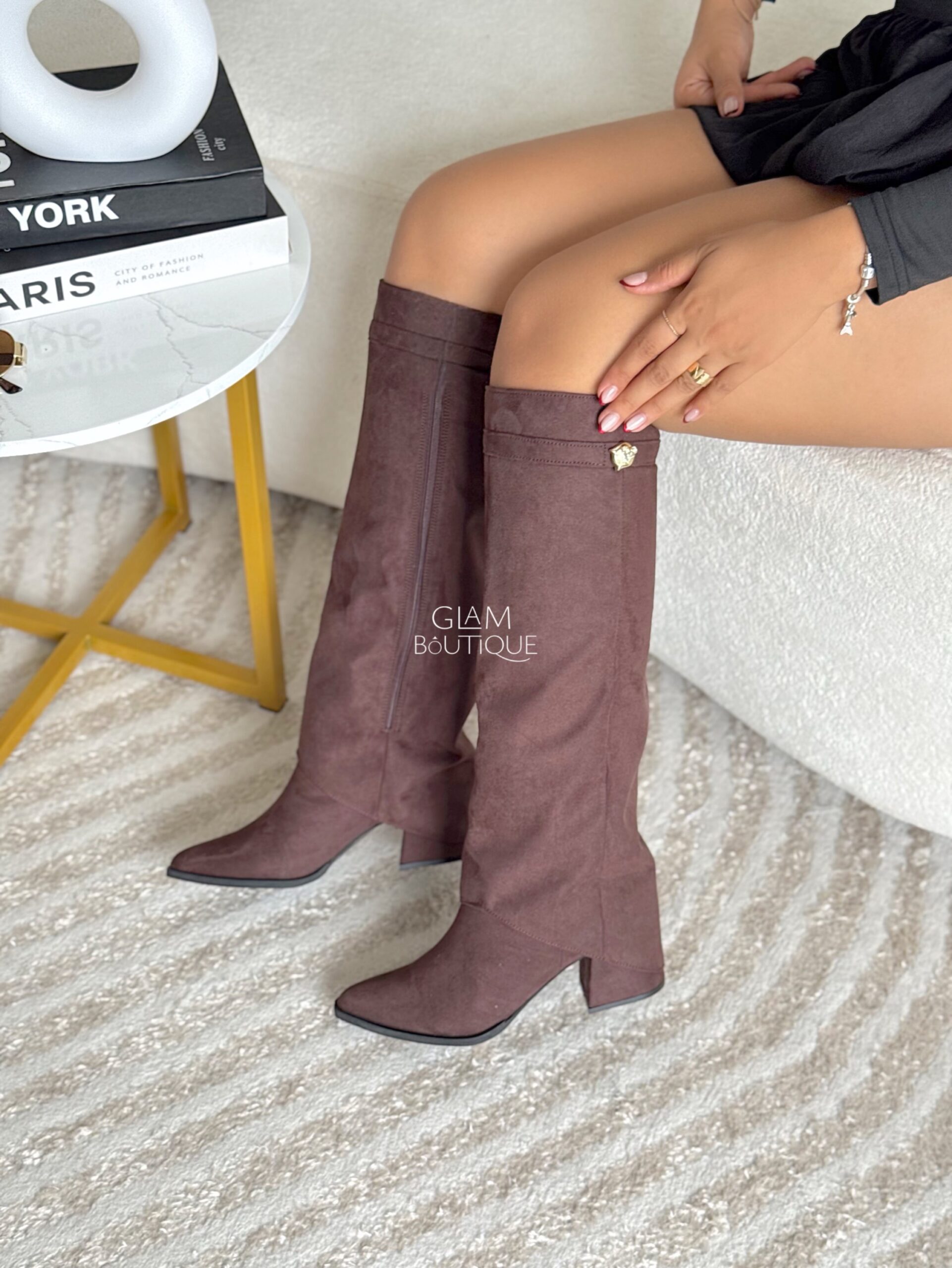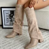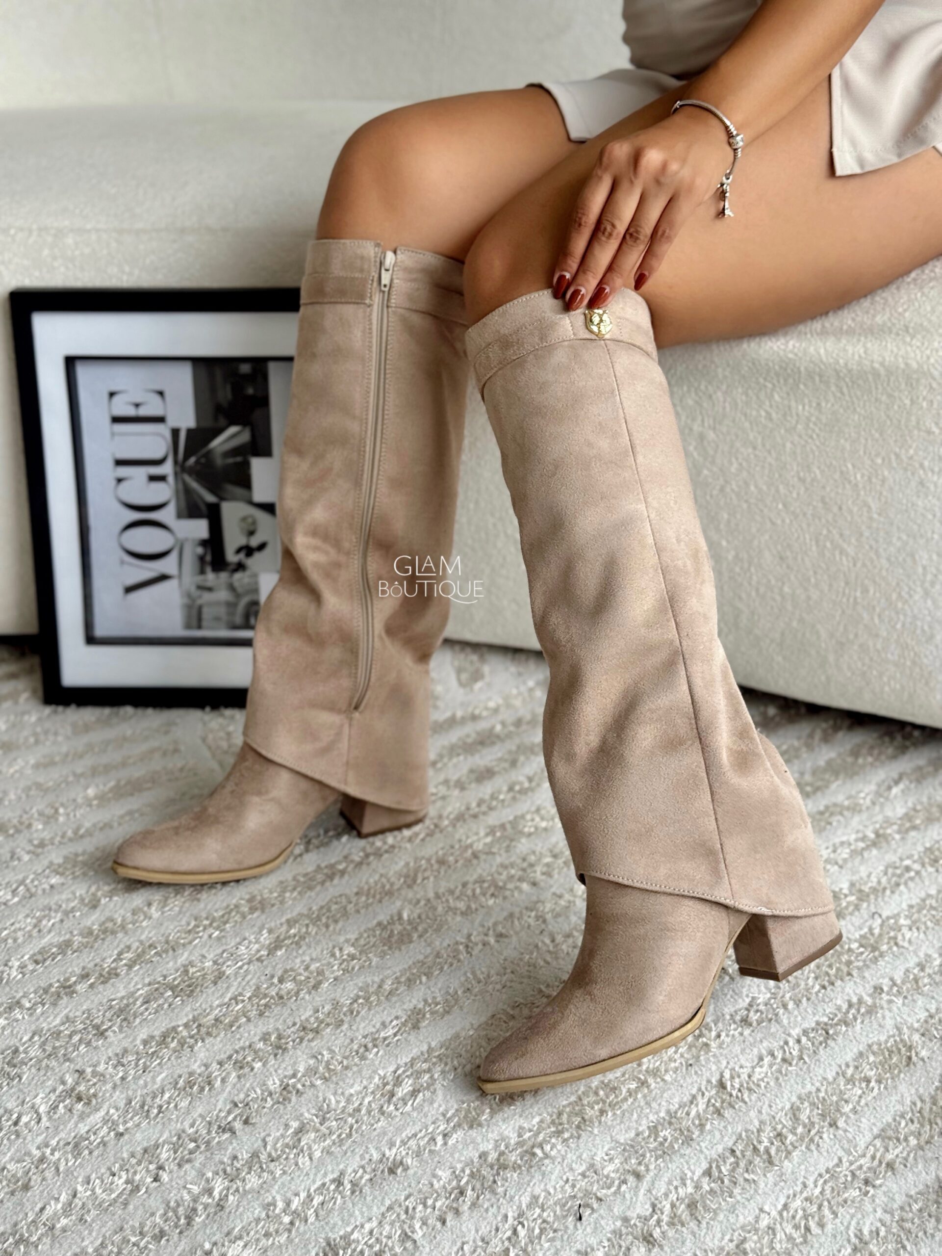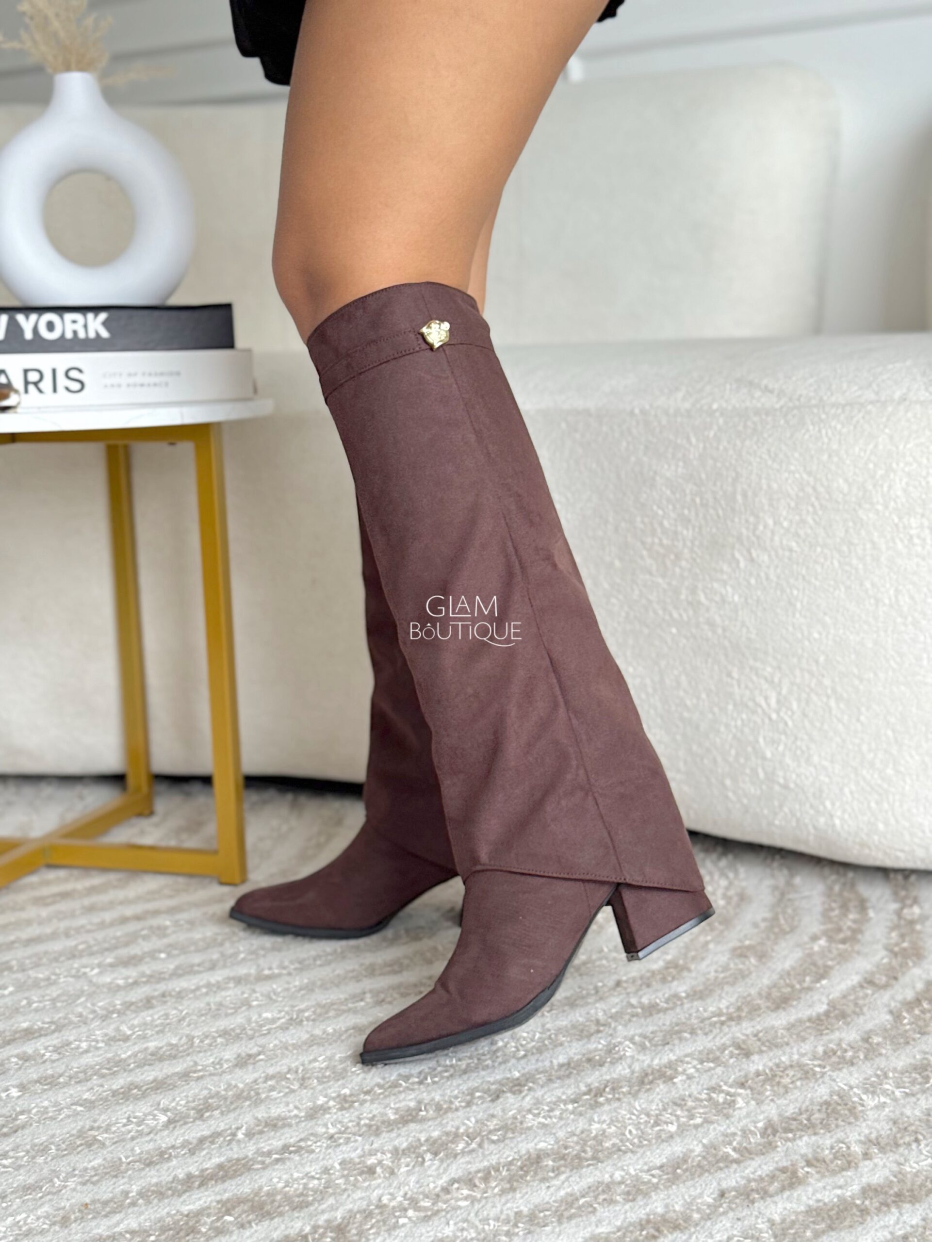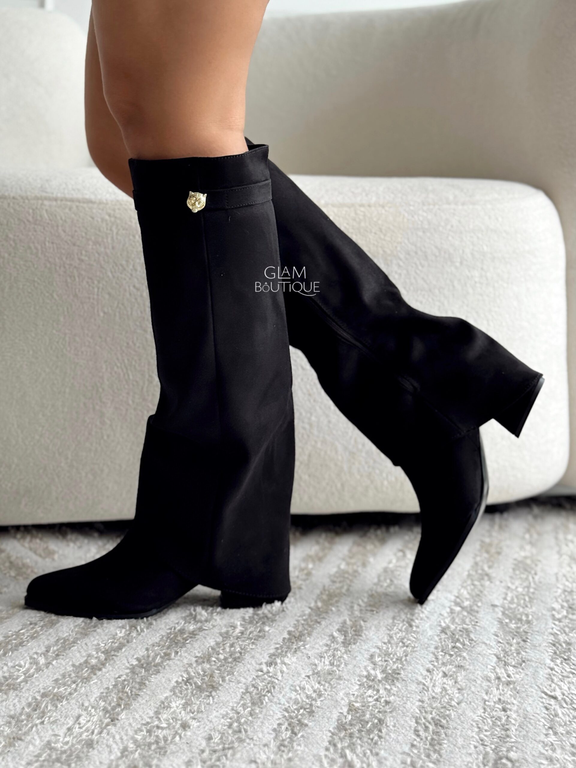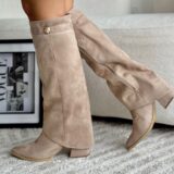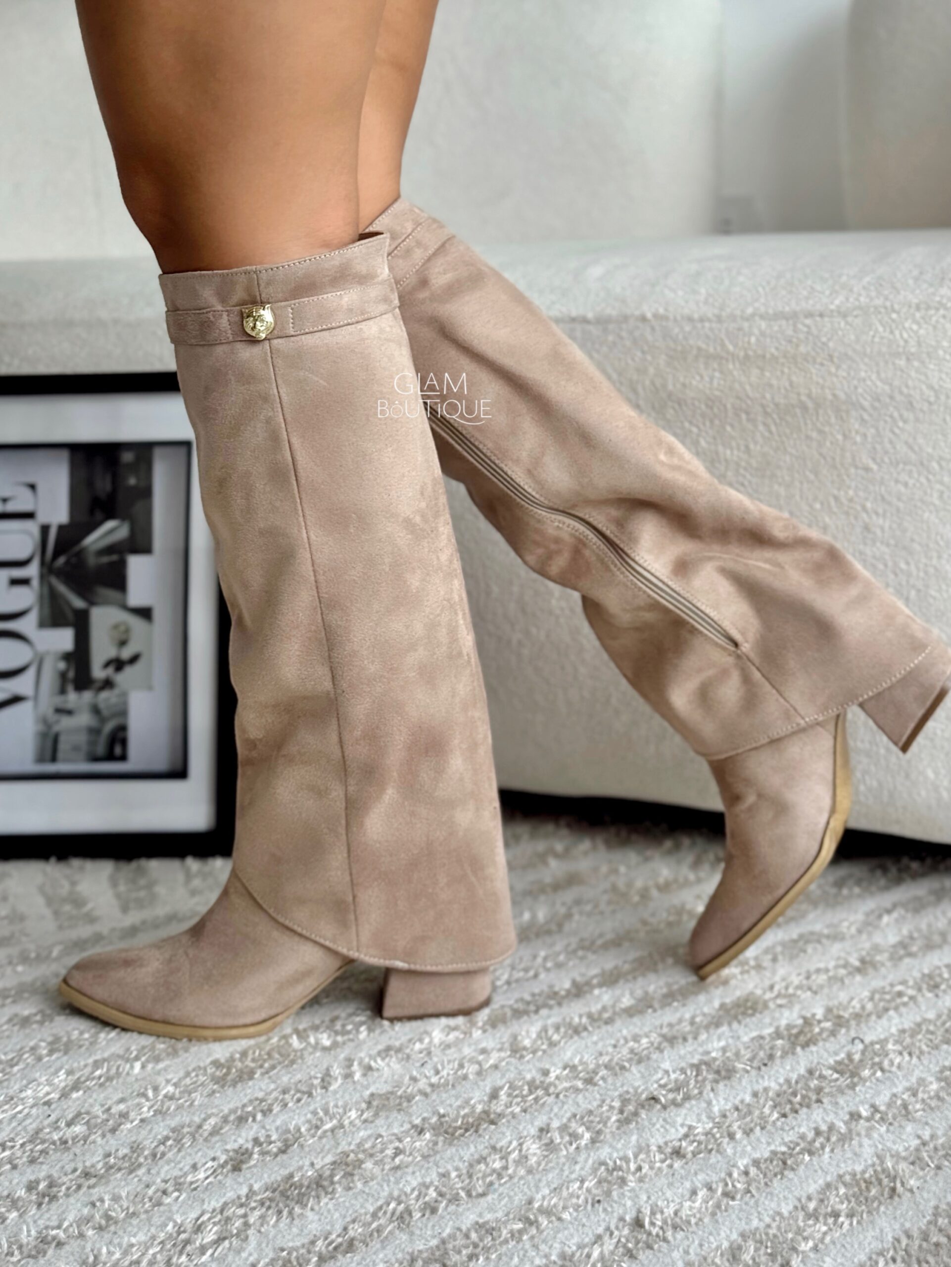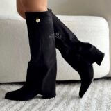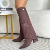 Botas con capa y aplique lateral metálico, por su material se ajustan a todo tipo de pierna, las vas amar. Material: Gamuza fina licrada. Tacón: 5½ cm