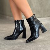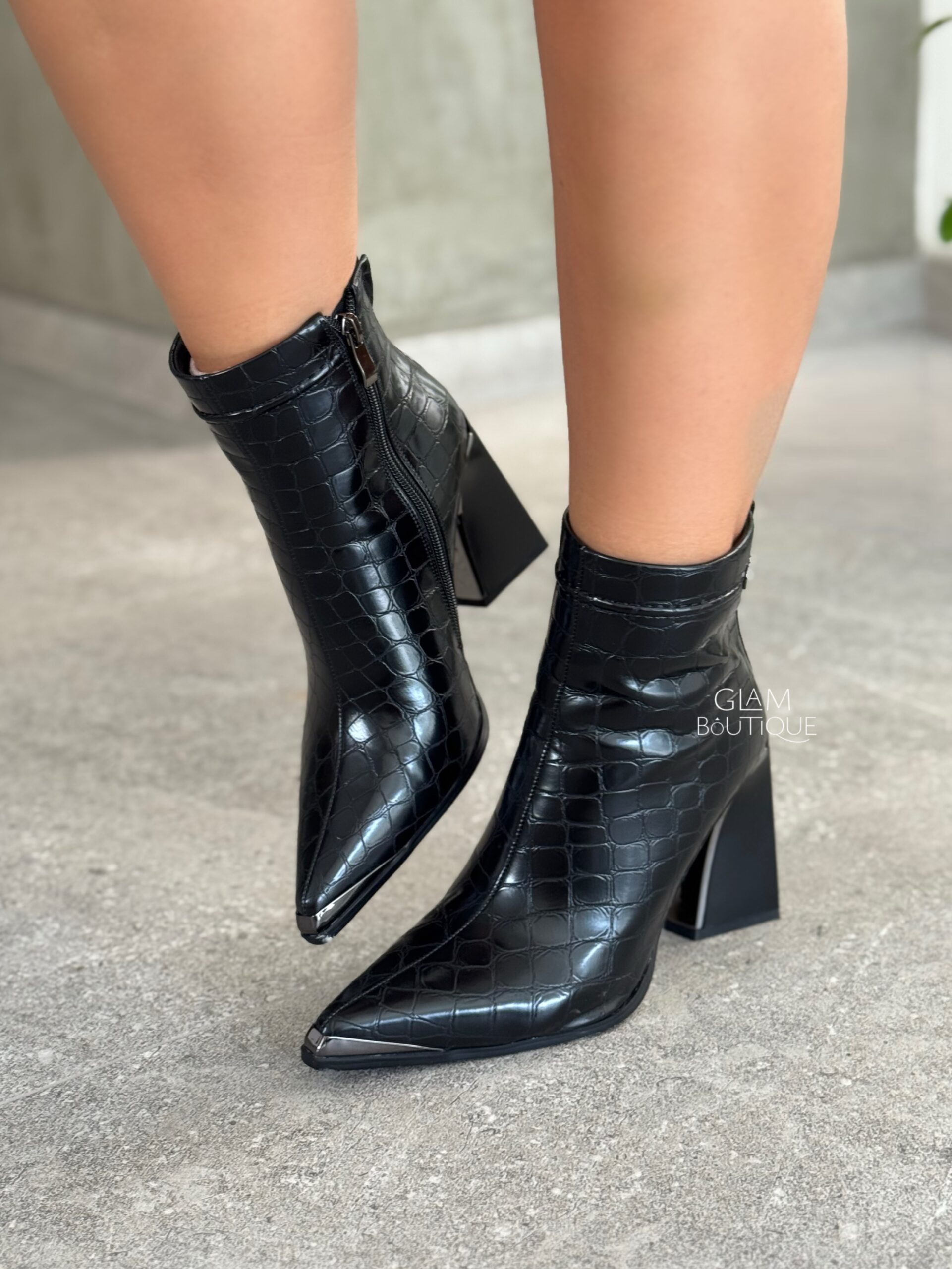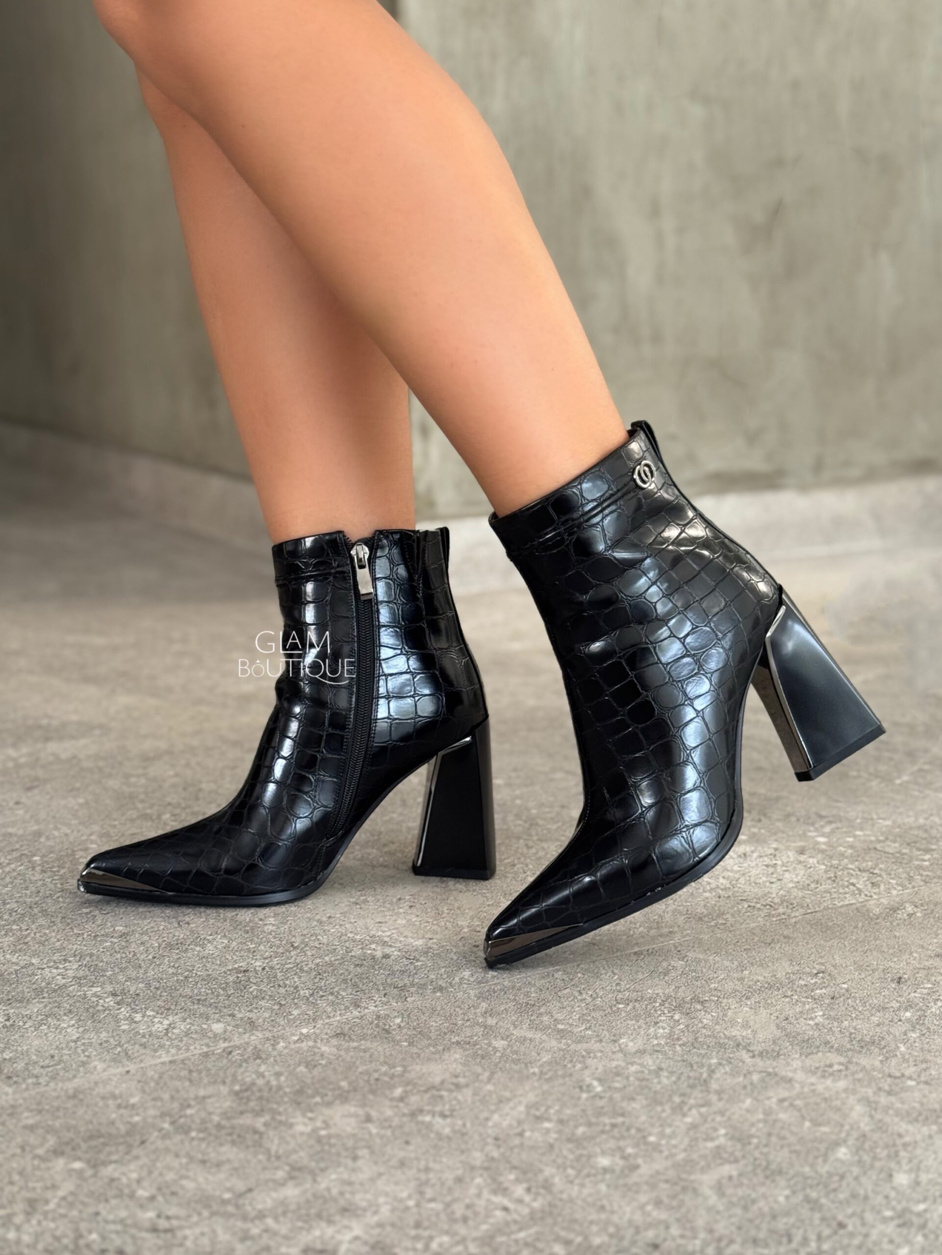 Botines con textura croco y apliques metálicos en tendencia súper cómodos, puntudos para estilizar tu figura, versátiles y fáciles de combinar Material: Base cuero